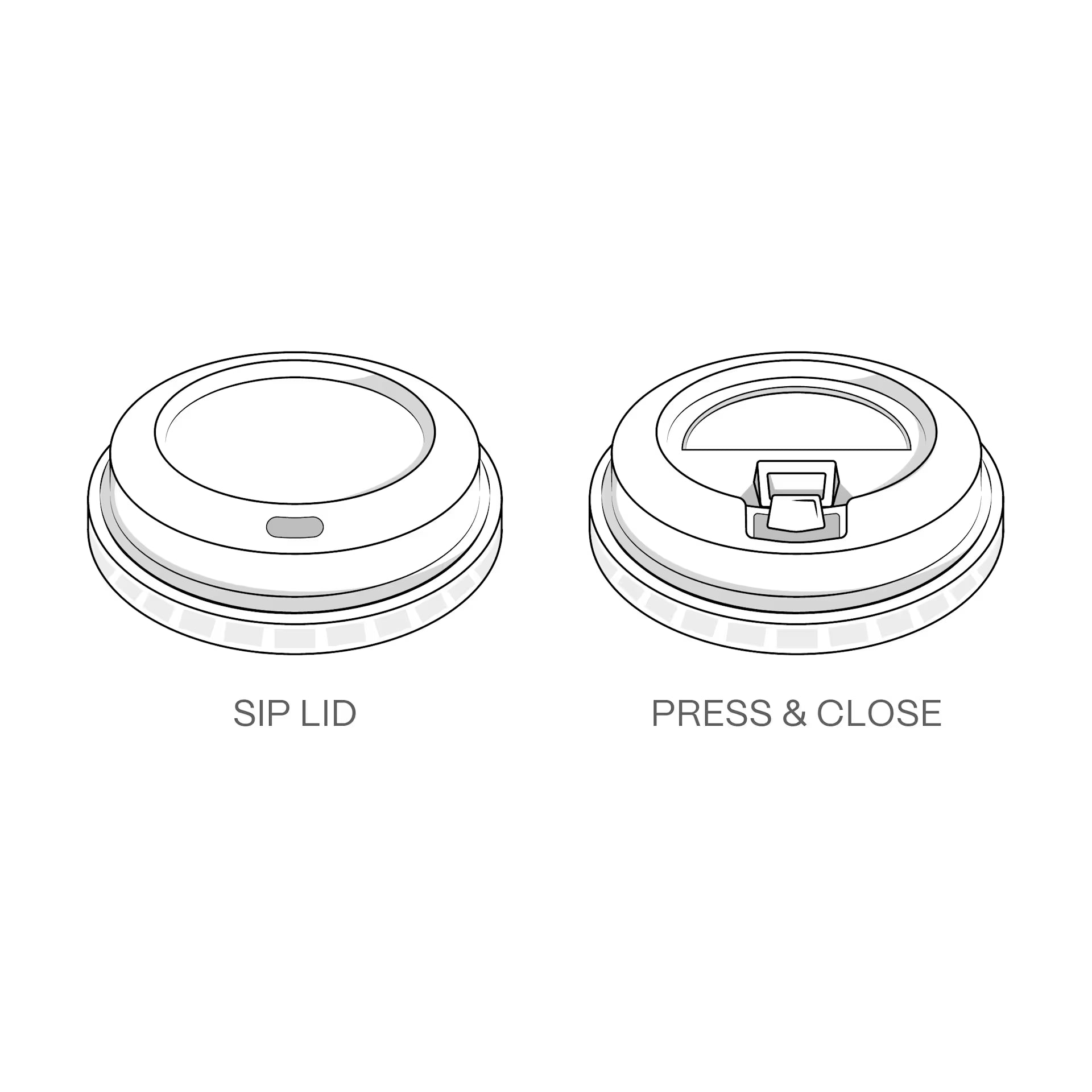 - Can order without lid, press & close lids, sip lids, white or black lids
